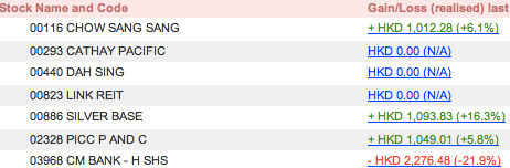 Wow 原來經過我上次的panic selling後,我還是有$878 realized net gain的,哈哈。