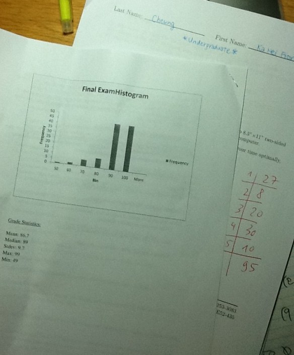 - 當你以為自己Final有95分好開心,睇下個distribution :o)