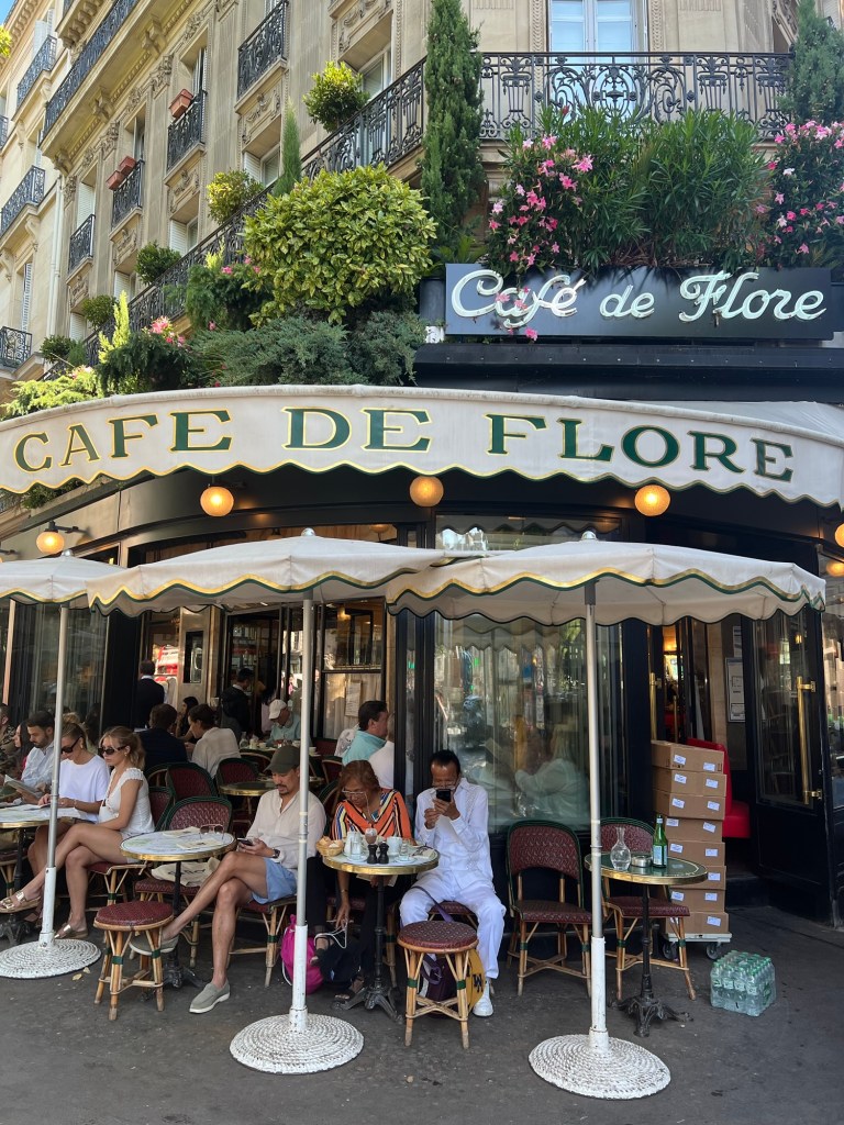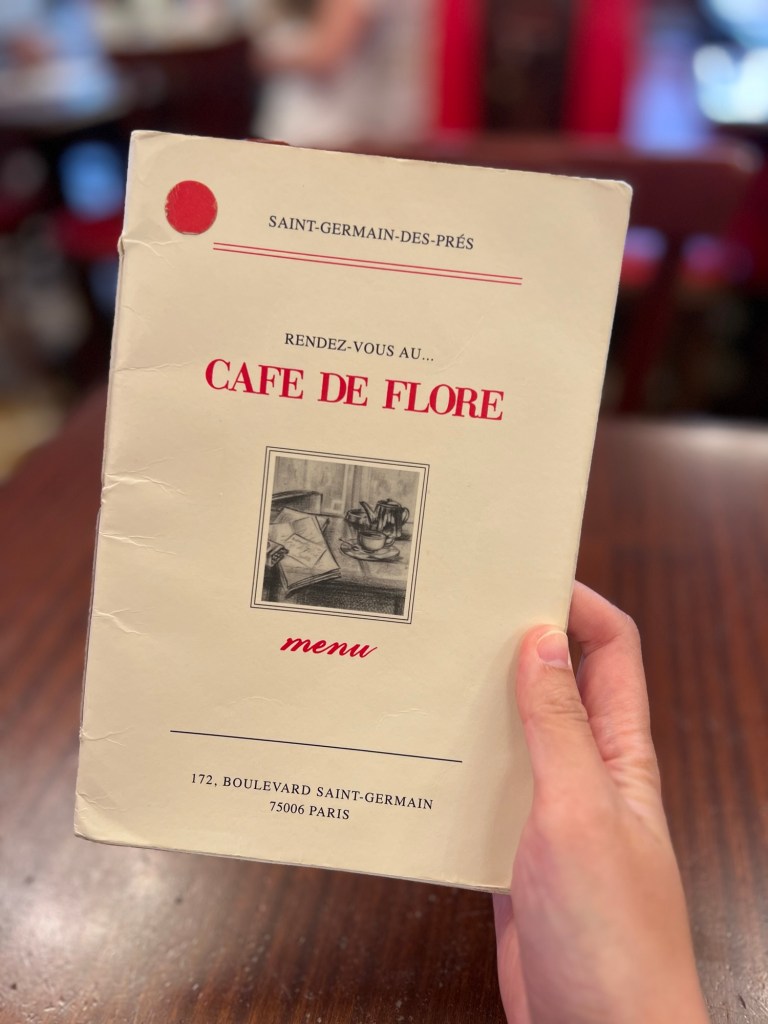 Cafe De Flore 花神咖啡店: 彷彿依然感受到那個年代的餘溫。紅椅子、鏡牆、金色的欄杆、碎石拼花的地板、黑色制服的侍應端着咖啡匆忙走過。